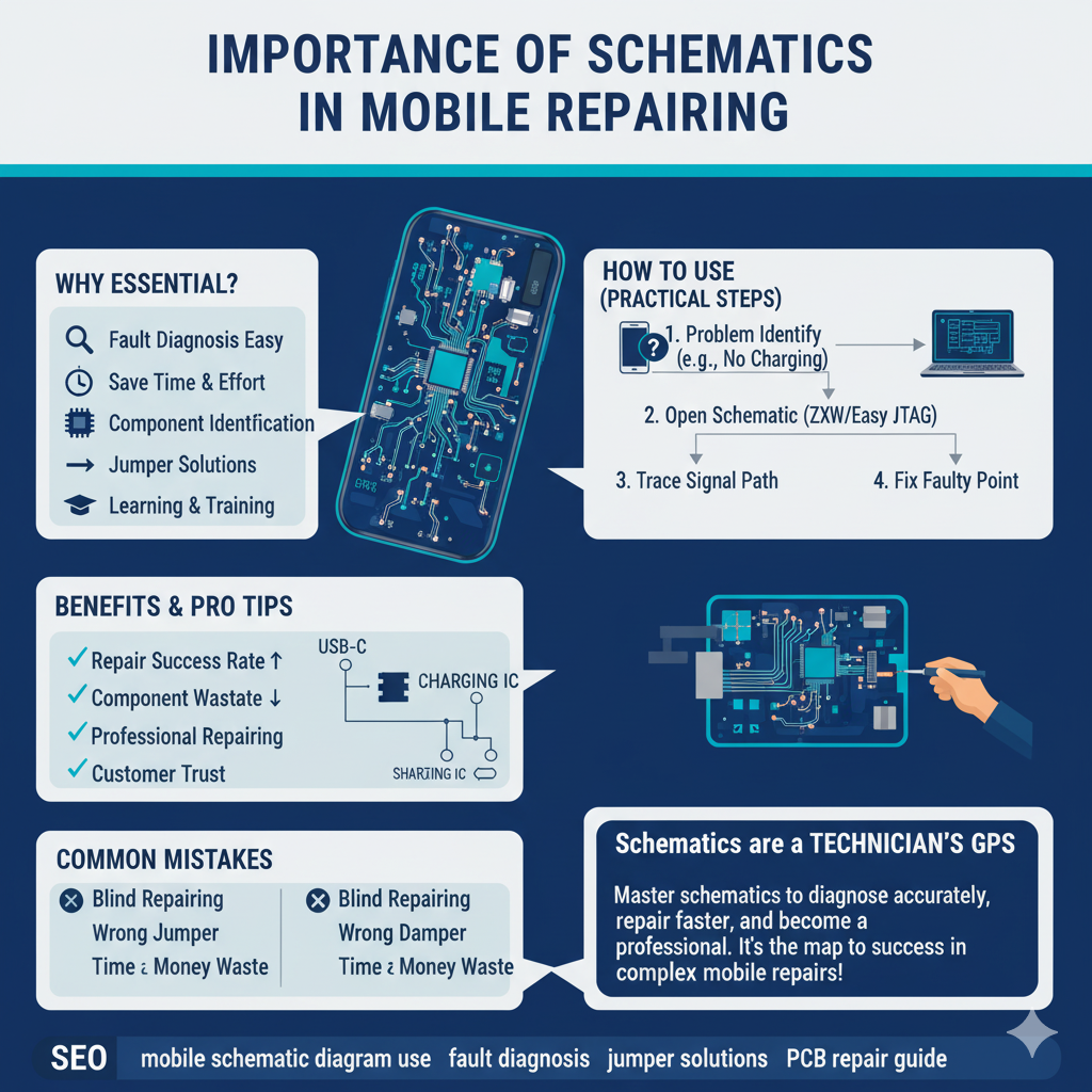 importance of schematics in mobile repairing, mobile schematic diagram use, smartphone repairing with schematics, how to read mobile schematics, jumper solutions using schematics, mobile motherboard repair guide, mobile repair circuit diagram, schematic tools for technicians, pcb repair using schematics, mobile hardware troubleshooting with schematics