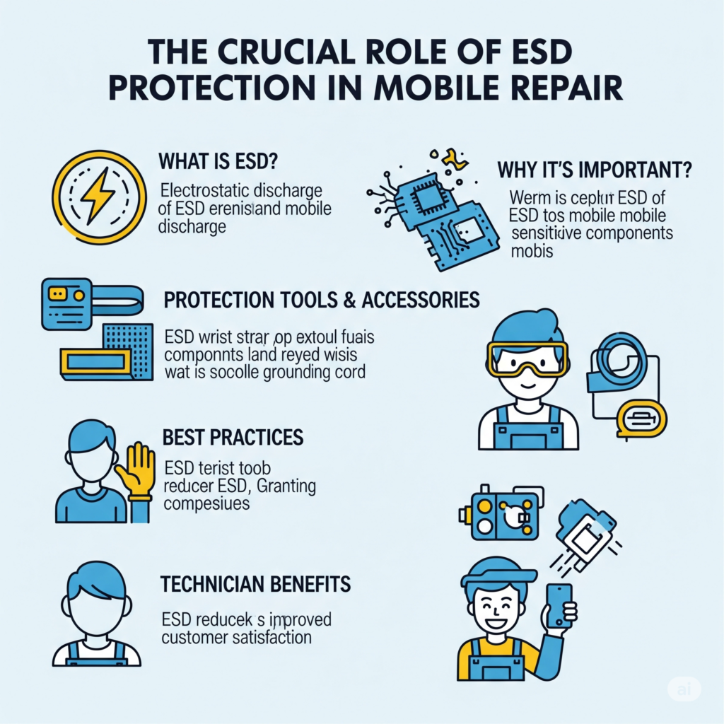 “Learn why ESD protection is essential in mobile repairing. Discover tools, safety tips, and professional practices to avoid motherboard & IC damage.